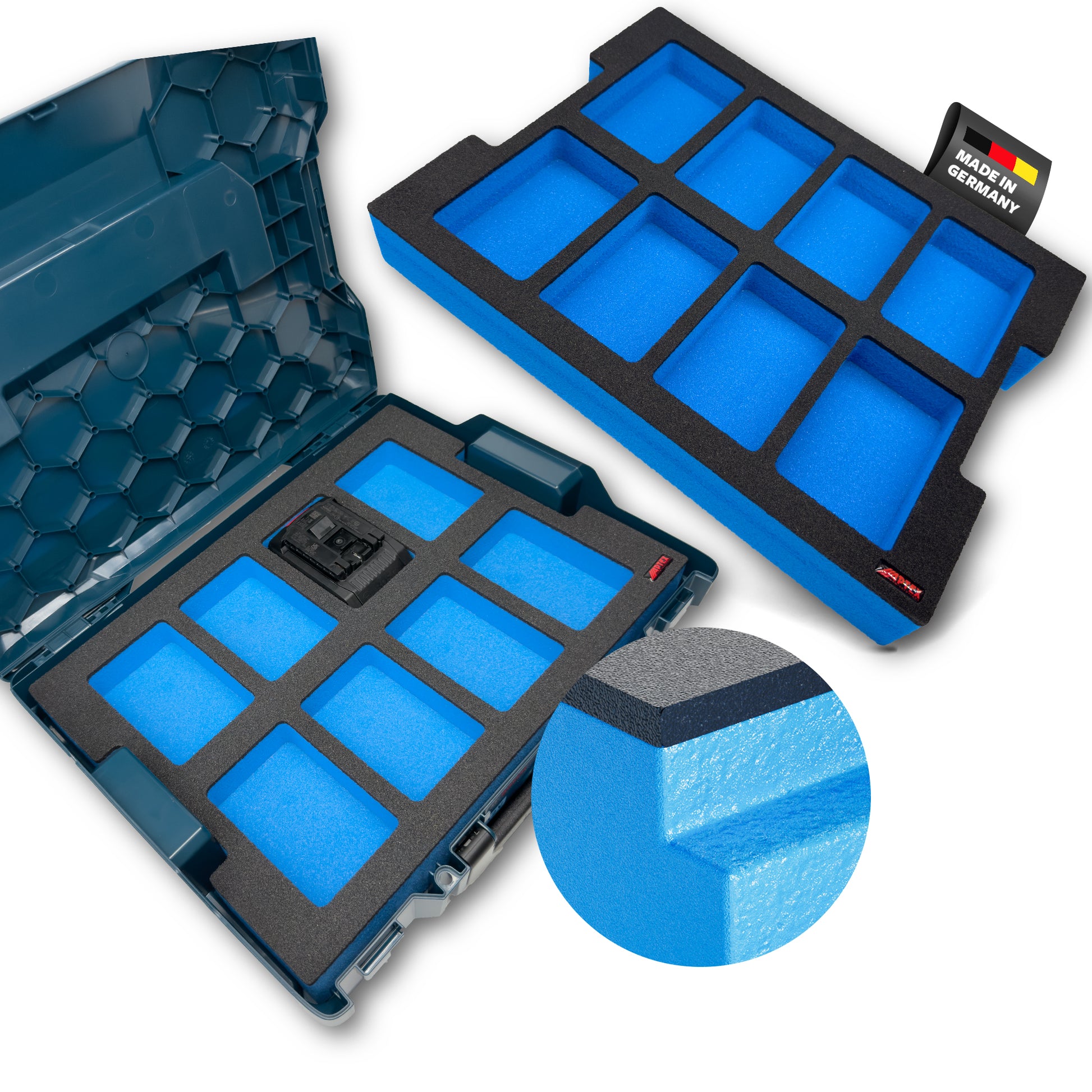 APTEX Bosch 8x ProCore 18V 4.0Ah Einlage für L-Boxx 102, 136 – Akku Schaumeinlage – Made in Germany