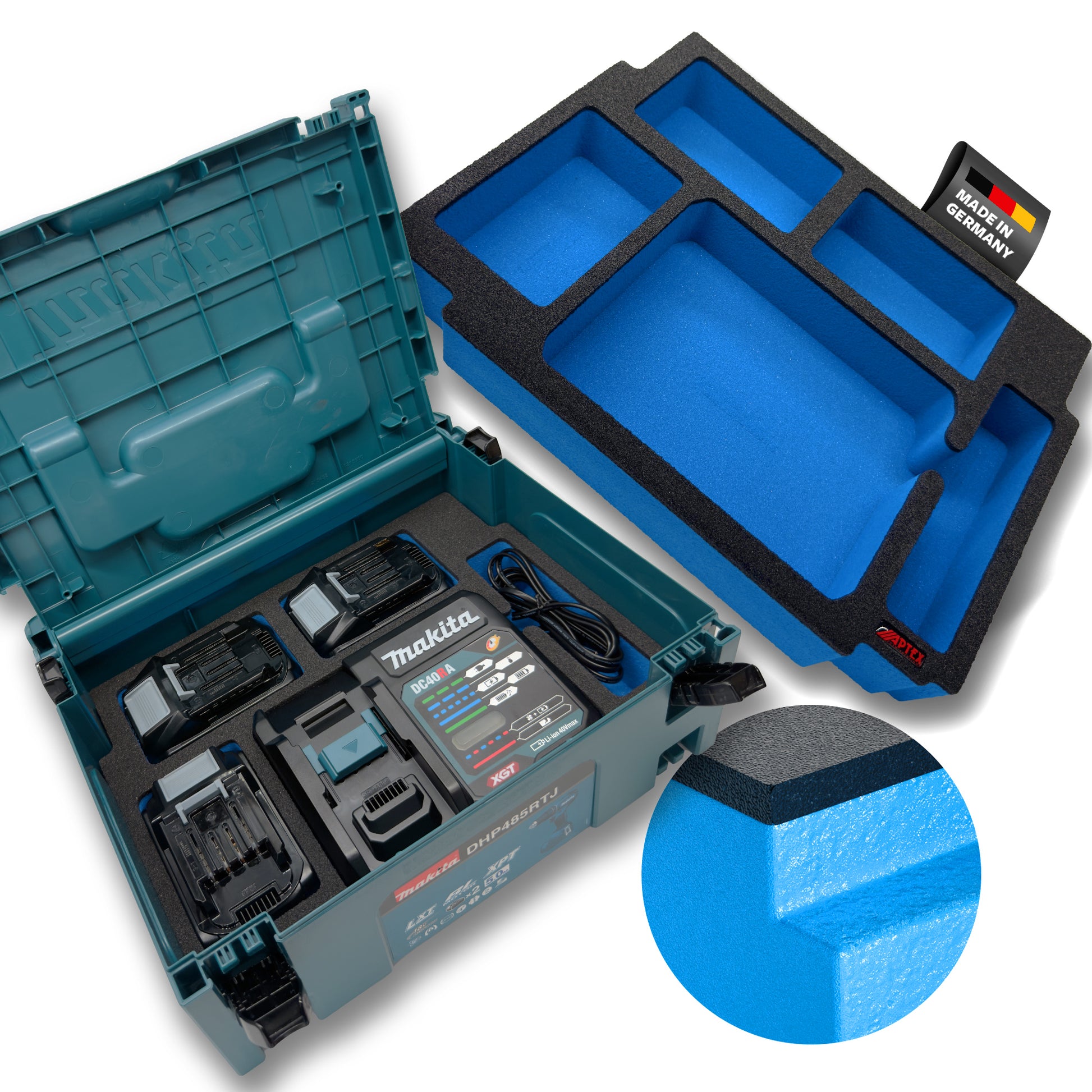 Schaumeinlage für Makita Akku-Ladegerät DC40RA + 3 Akkus 40V XGT 4Ah für MakPac Gr. 2-3